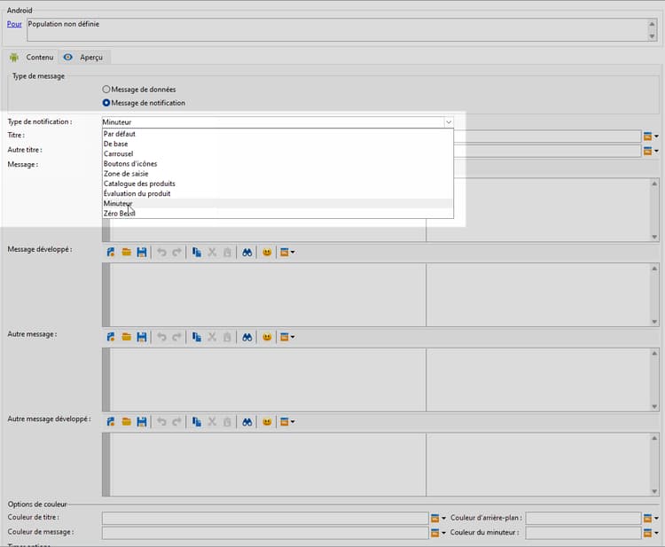 Dans le menu déroulant Type de notification, sélectionnez Retardateur.