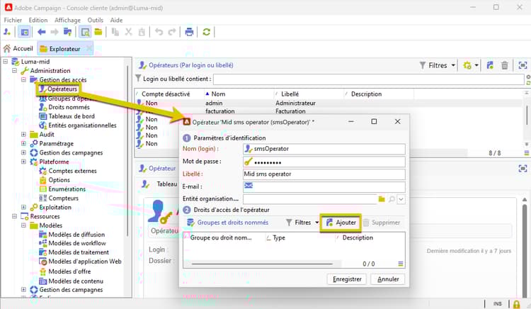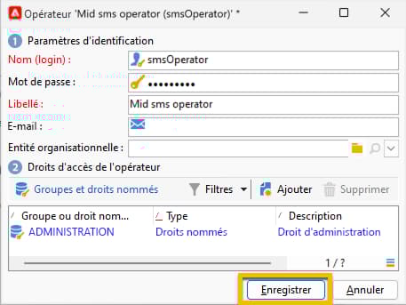 Dans Administration > Gestion des accès > Opérateurs, cliquez sur Nouveau et remplissez le formulaire dans la nouvelle fenêtre ouverte.