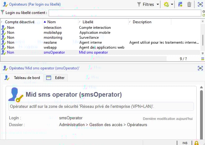 - Opérateur SMS sur le serveur de midsourcing. Découvrir ici comment le créer