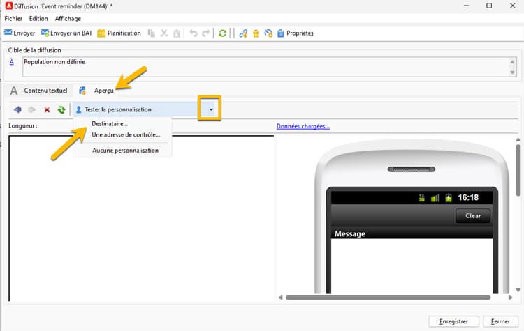 Pour configurer le contenu de votre diffusion SMS :