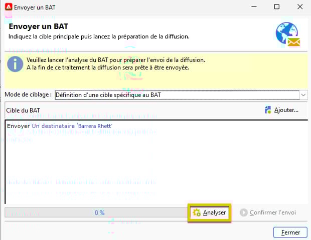 Cliquez sur le bouton Envoyer un BAT, une fenêtre s’ouvre.