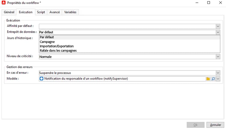 Pour en savoir plus sur les propriétés du workflow, consultez cette page.