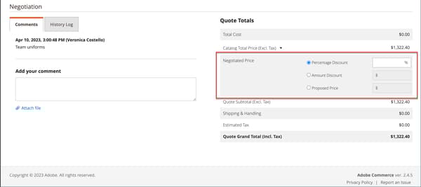 Si tous les articles du guillemet ont une remise verrouillée, la section Negotiated Price est désactivée car aucune remise supplémentaire ne peut être appliquée.