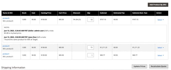 Les Quote Totals sont mis à jour pour prendre en compte le prix d’expédition proposé.