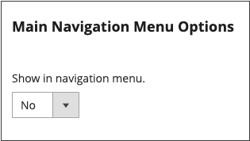 Si vous souhaitez également que le nœud soit visible dans le menu de navigation, faites défiler l’écran jusqu’à Options du menu de navigation principal et définissez Show in Navigation menu sur