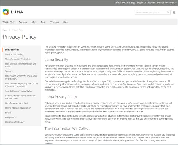 Le système de hiérarchie des pages de la boutique vous permet d’organiser vos pages de contenu et d’ajouter de la pagination, de la navigation et des menus. La page Politique de confidentialité dans les exemples de données est un exemple de page avec un menu à gauche. Si vous publiez régulièrement une grande quantité de contenu, vous pouvez utiliser une hiérarchie de page pour organiser votre contenu afin de faciliter la recherche d’articles intéressants pour les personnes.