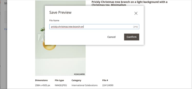 Un aperçu d’image est une version en filigrane d’une ressource Adobe Stock. Les aperçus d’images sont gratuits et sont un bon moyen de tester différentes images avant de décider d’acheter une licence pour des images spécifiques et de les utiliser dans vos magasins de production.