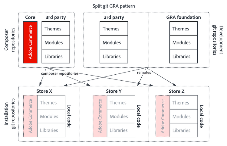 Ce guide explique comment configurer Adobe Commerce avec le modèle d’architecture de référence globale (GRA) Git partagé.