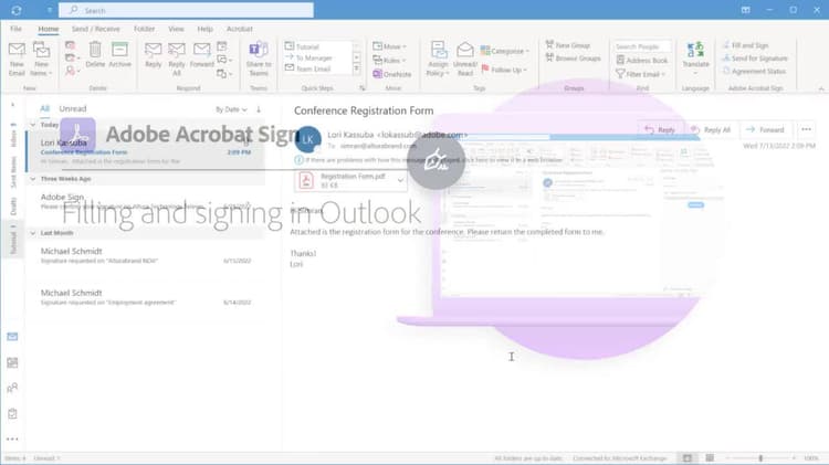 Apprenez à rationaliser les workflows documentaires en remplissant et en signant un formulaire directement dans Microsoft Outlook.