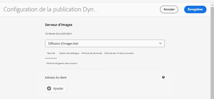 Pour configurer le serveur d’images de la configuration de la publication Dynamic Media :