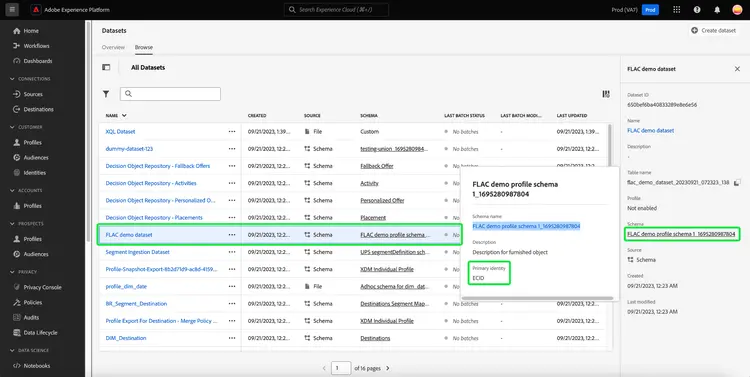 - Les données ingérées avant la configuration de l’identité ne sont pas éligibles. Si le champ Identité principale a été ajouté à un schéma après l’ingestion des données, les enregistrements précédemment ingérés ne peuvent pas être supprimés par ce workflow.