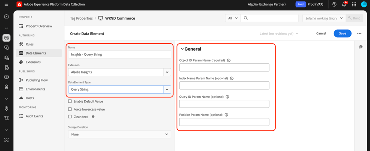 Éléments de données de l’extension Algolia Insights data-elements