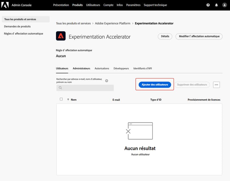 Dans l’onglet Utilisateurs et utilisatrices, cliquez sur Ajouter des utilisateurs et utilisatrices.