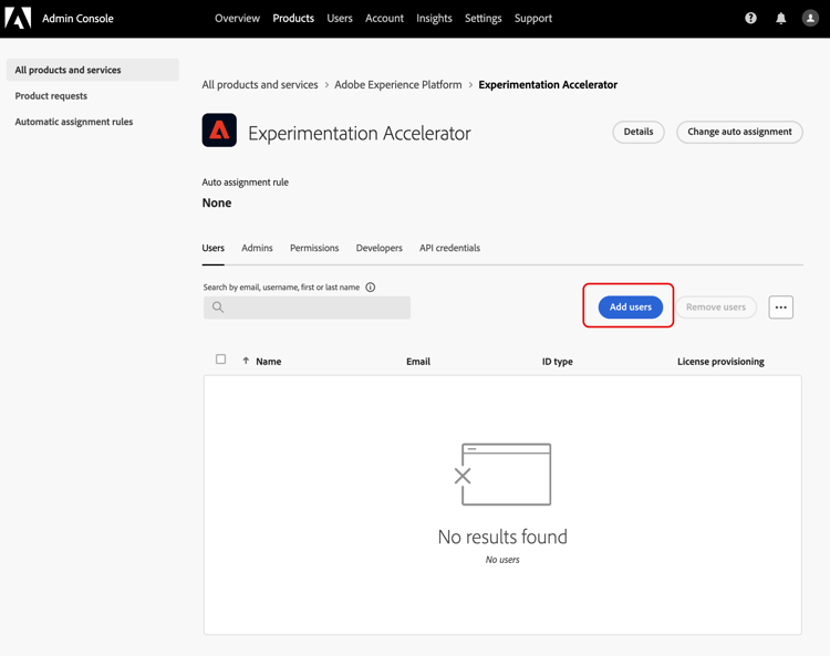 Les utilisateurs ajoutés à ce profil peuvent désormais accéder à Journey Optimizer Experimentation Accelerator à partir du sélecteur d’applications.