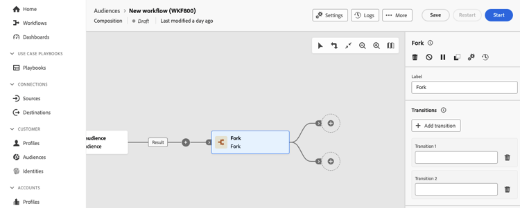 Dans la composition d’une audience fédérée, vous pouvez ajouter des activités et des transitions qui permettent de définir votre audience.