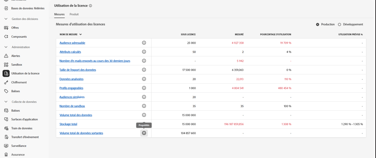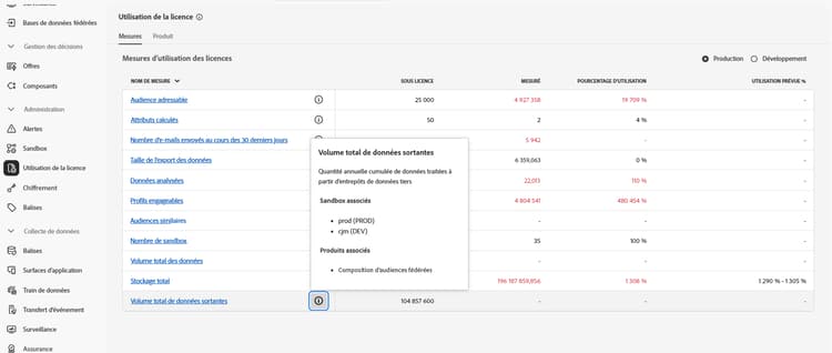 À partir de la composition d’audiences fédérées, accédez au menu Utilisation des licences sous Administration.