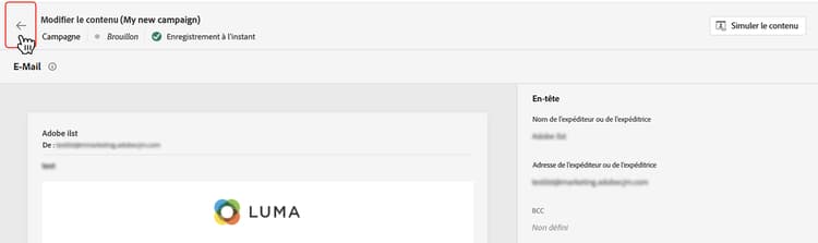 Pour revenir à l’écran de création de campagne, cliquez sur la flèche pointant vers la gauche.