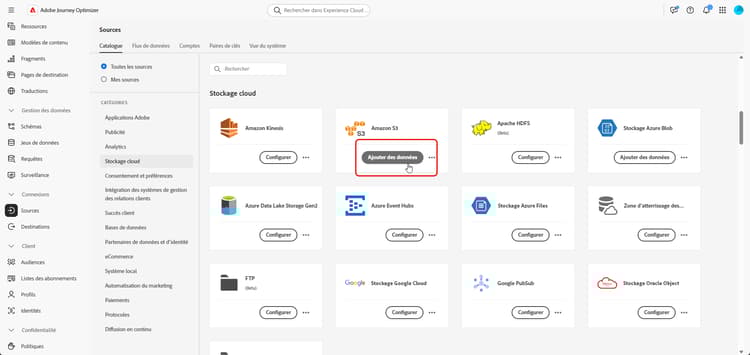 Adobe Experience Platform permet d’ingérer des données à partir de sources externes tout en vous offrant la possibilité de structurer, d’étiqueter et d’améliorer les données entrantes à l’aide des services d’Experience Platform. Vous pouvez ingérer des données provenant de diverses sources telles que les applications Adobe, les stockages dans le cloud, les bases de données, etc.