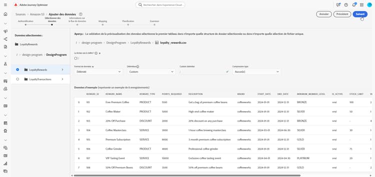 Sélectionnez les données à ingérer dans Adobe Experience Platform.