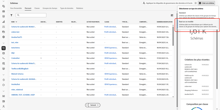 Création manuelle d’un schéma basé sur un modèle à l’aide de l’interface Adobe Experience Platform.