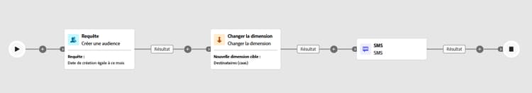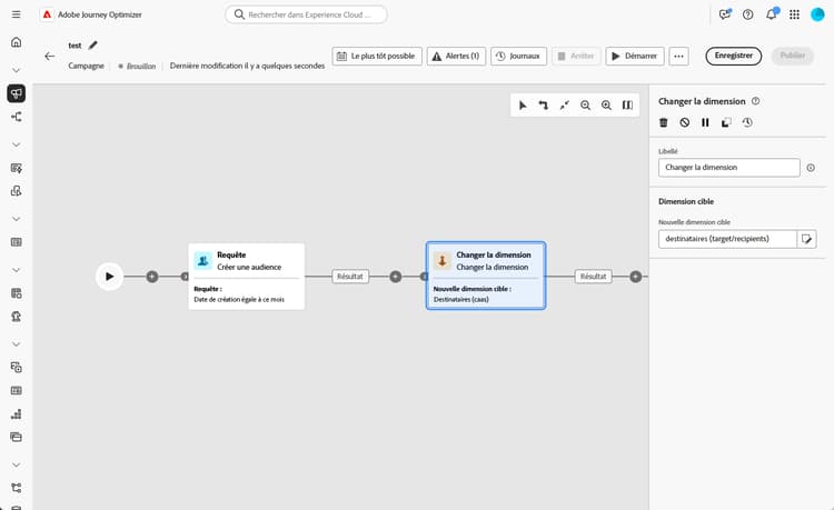 Pour ce faire, utilisez l’activité Changement de dimension. Elle permet d’ajuster la dimension du ciblage au cours de la campagne orchestrée.