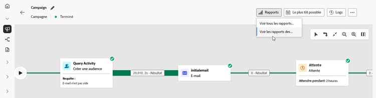 Une campagne orchestrée vous fournit des informations exploitables grâce à ses puissantes fonctionnalités de reporting. Ces informations vous aident à mieux comprendre le comportement de l’audience, à mesurer les performances de chaque étape de votre parcours client et à prendre des décisions basées sur les données afin d’optimiser les campagnes futures. Grâce aux mesures et visualisations détaillées, vous pouvez suivre l’engagement et affiner vos stratégies de ciblage pour un impact maximal.