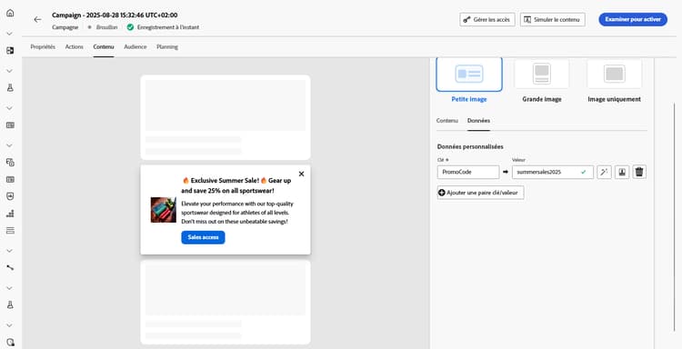 Une fois votre contenu défini et personnalisé, vous pouvez le consulter et l’activer. Votre campagne sera envoyée selon le planning défini. En savoir plus dans cette page.