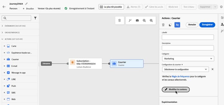 Une fois que la configuration du publipostage direct est prête, vous pouvez ajouter une action Publipostage direct dans votre parcours.