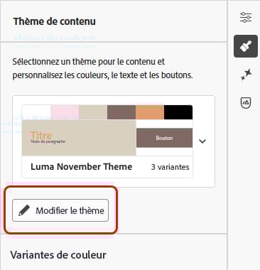 Lorsqu’un thème est sélectionné dans un modèle de contenu, vous pouvez cliquer sur le bouton Modifier le thème pour le mettre à jour. En savoir plus