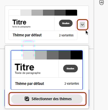 Cliquez sur la flèche en regard du thème actuellement utilisé. La liste des thèmes personnalisés et Adobe disponibles s’affiche.