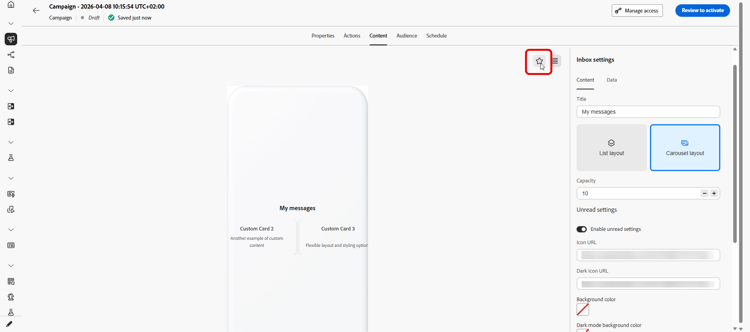 Ouvrez l’onglet Contenu de la campagne Boîte de réception que vous avez créée.