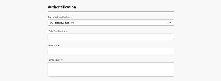 - Authentification JWT : fournissez les informations requises si votre point d’entrée nécessite une authentification JWT.