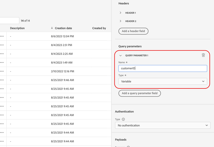 Collez un exemple de la payload renvoyée par l’appel. Vérifiez que les types de champ sont corrects (chaîne, entier, etc.). Voici un exemple de payload de réponse capturée lors de l’appel. Notre point d’entrée local envoie le nombre de points de fidélité et le statut d’un profil.