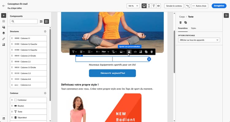 Intégration : les fragments de contenu sont sélectionnés et intégrés dans les campagnes ou les parcours.