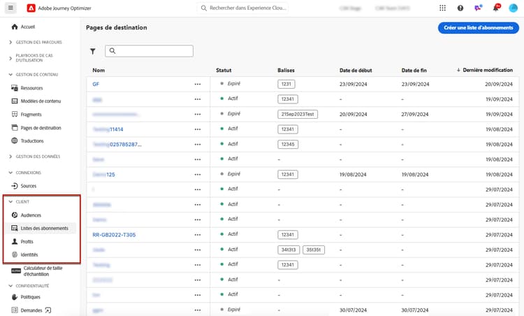 Les rapports à toute heure sur les listes d’abonnements, avec Customer Journey Analytics