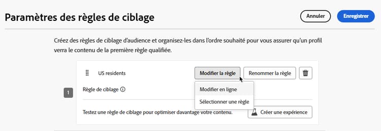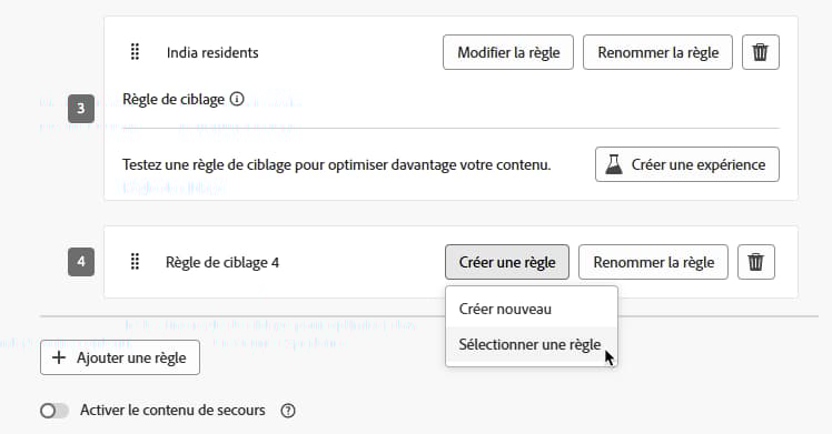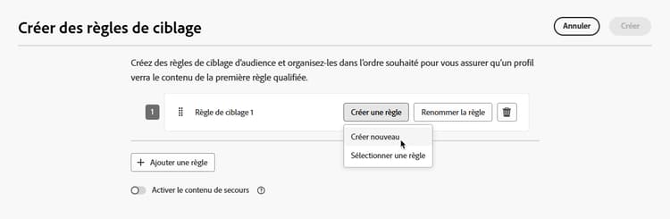 Concevoir un contenu adapté pour chaque groupe défini par les paramètres de règle de ciblage