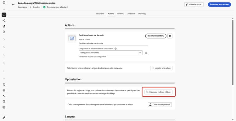 Dans la section Optimisation, sélectionnez Créer une règle de ciblage.