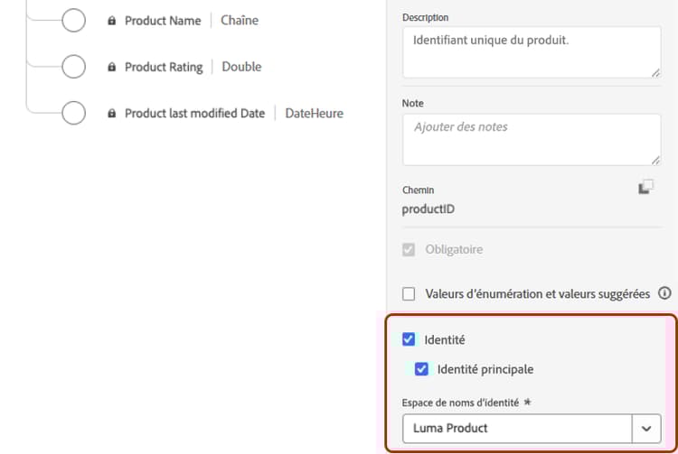 Le schéma sur lequel le jeu de données est basé doit contenir une identité principale pouvant servir de clé de recherche.