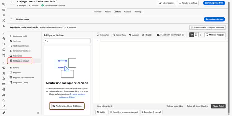 - Ajouter une politique de décision : à partir de l’éditeur de personnalisation ou du concepteur d’e-mail.