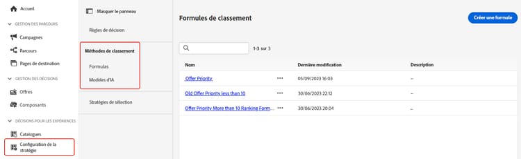 Des informations détaillées sur création de formules de classement et de modèles d’IA sont disponibles dans les sections suivantes :