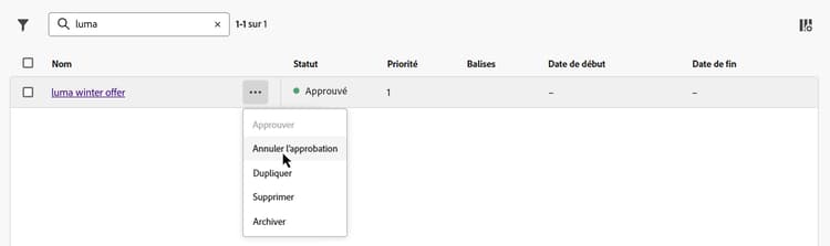 note important IMPORTANT Une fois supprimés, l’élément de décision et son contenu ne sont plus accessibles. Cette action ne peut pas être annulée. Les éléments d’offre approuvés ne peuvent pas être supprimés s’ils sont utilisés dans une collection ou une décision. Pour les supprimer, changez leur statut en « Brouillon ». Pour ce faire, cliquez sur le bouton représentant des points de suspension et sélectionnez Annuler l’approbation.