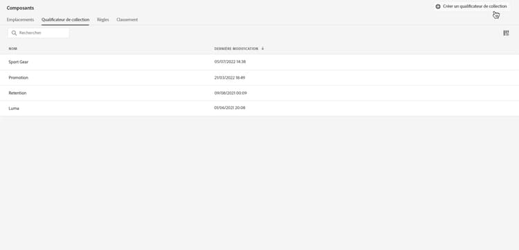 La liste des qualificateurs de collection créés est accessible dans le menu Composants.