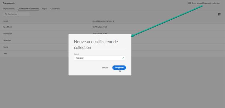 Indiquez le nom du qualificateur de collection, puis cliquez sur Enregistrer.