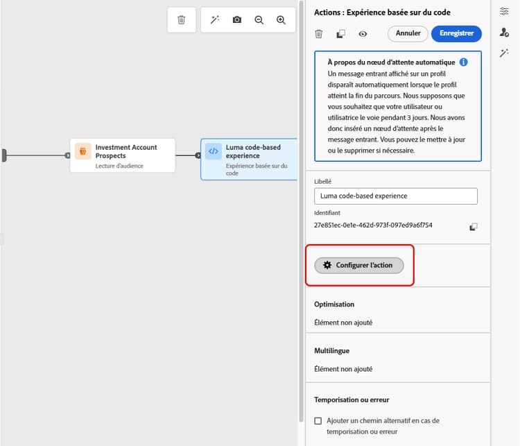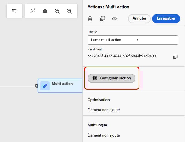 - Configuration d’action native simplifiée dans la zone de travail de parcours