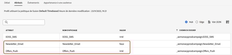 note note NOTE Les événements de consentement entrants sont intégrés au profil client, ce qui garantit des mises à jour en temps réel. Chaque profil reflète ses choix les plus récents dans les préférences d’abonnement. -