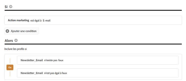 note tip TIP Le jeu de données compatible avec les profils doit inclure l’attribut de profil Newsletter_E-mail avec la valeur définie sur vrai (comme décrit à l’étape 1). -