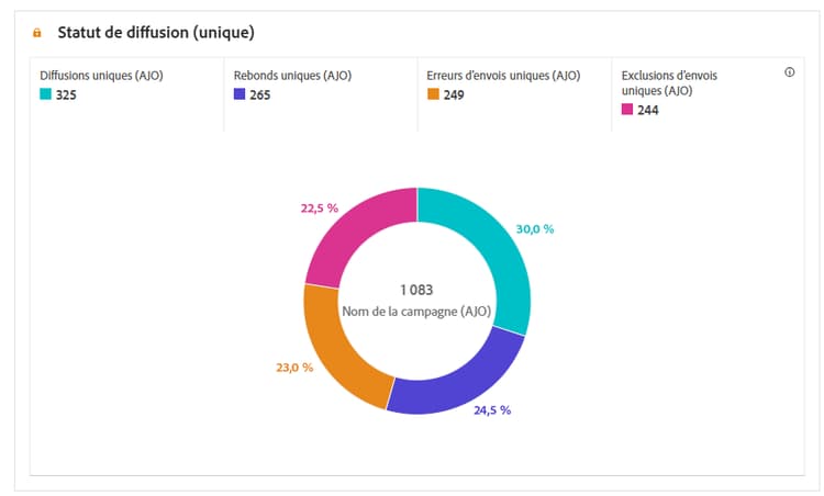 Exclusions d’envois uniques : nombre de profils uniques exclus de la réception des messages en raison de règles ou de critères d’audience prédéfinis.
