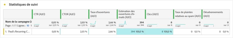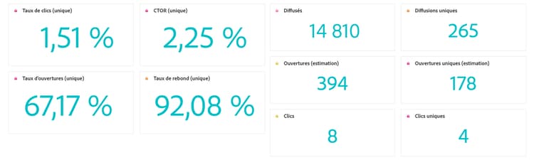 Taux de clics (CTR) : pourcentage d’utilisateurs et d’utilisatrices ayant interagi avec l’e-mail.