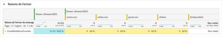 Le tableau Causes d’erreur offre une visibilité des erreurs spécifiques survenues pendant le processus d’envoi, fournissant des informations précieuses sur la nature et l’occurrence des erreurs.
