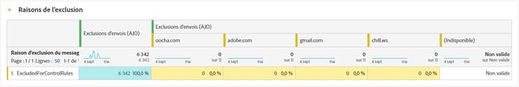 Exclusions d’envoi : nombre total de profils qui ont été exclus par Adobe Journey Optimizer.
